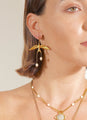 Load image into Gallery viewer, Flying Pearl Earrings in 24k gold plate with pearls.